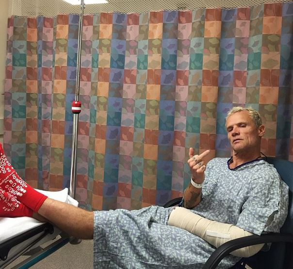 Não foi informado oficialmente o que de fato aconteceu com o Flea, portanto não há informações precisas sobre a gravidade da fratura e o prazo de recuperação do músico.