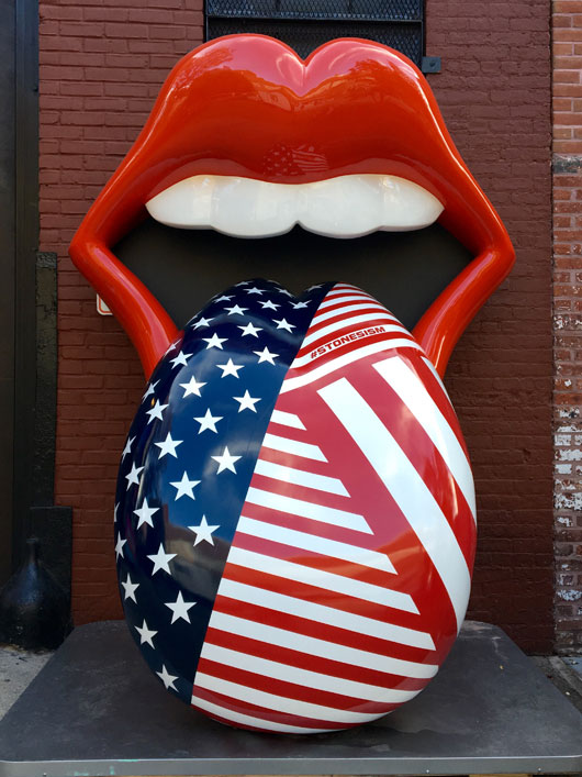 Ela está presente em inúmeros posters, capas de álbuns e outros elementos expostos ali. Continuando o passeio, podem ser vistas maquetes de palcos de algumas de suas turnês, como Voodoo Lounge, de 1994. Em seguida, uma comprido salão exibe uma belíssima coleção com mais de 70 roupas originais, usadas pela banda em suas apresentações. O tour culmina em uma experiência 3D de um backstage de um show, despertando a emoção que seria estar lá com eles.