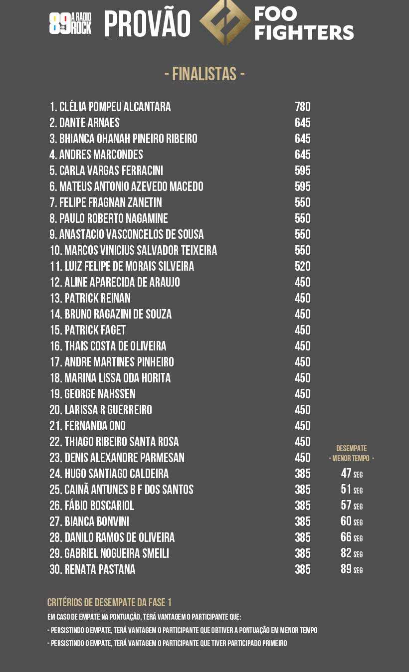 Aqui está o resultado da primeira fase do Provão Foo Fighters na 89.