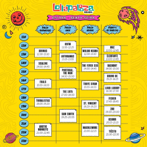A organização do Lollapalooza Brasil divulgou nesta sexta-feira (15) a programação de suas atrações divididas por palcos.