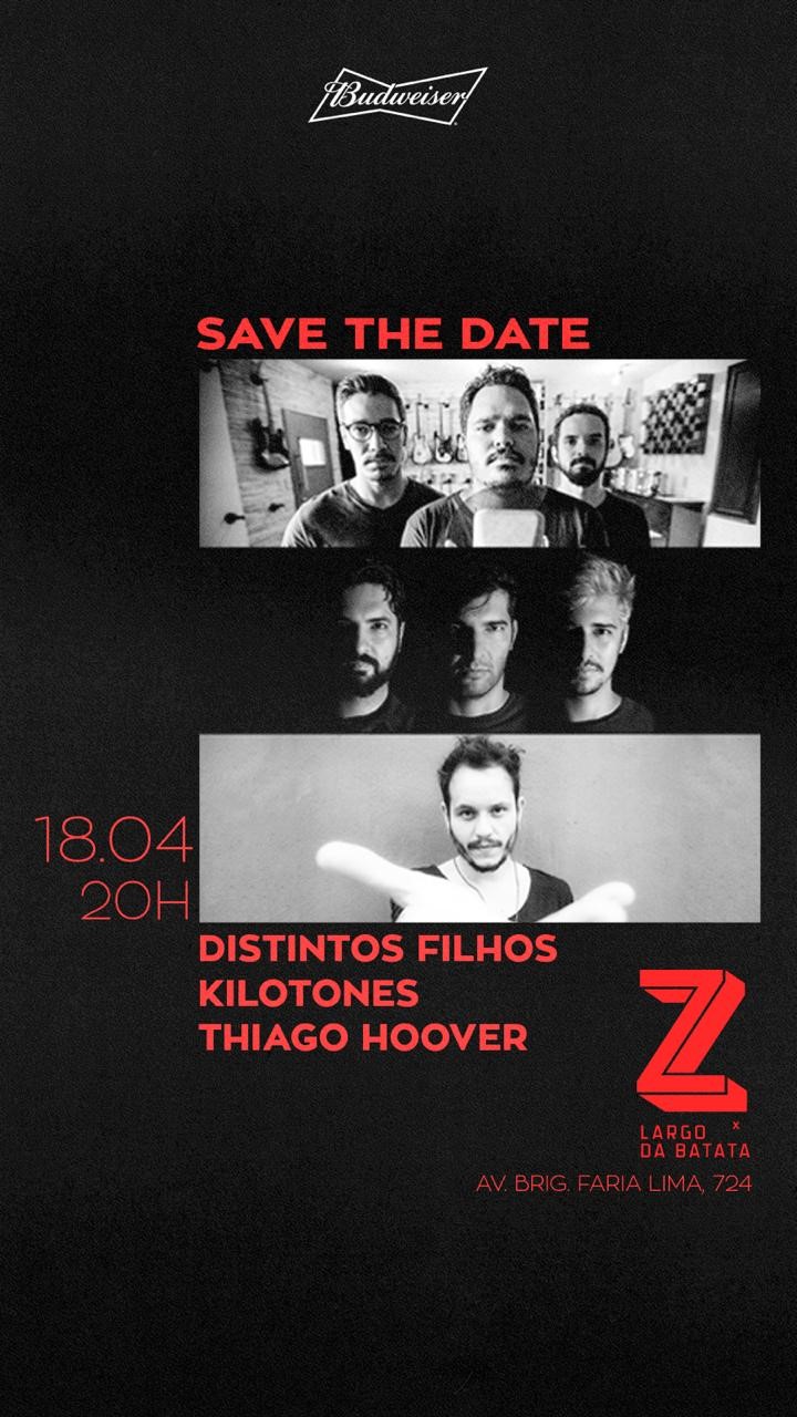 Na véspera do feriado, nesta quinta-feira, dia 18 de abril, a casa Z Largo da Batata reunirá no palco as bandas Kilotones (SP), Distintos Filhos (DF) e  Thiago Hoover (PE), para celebrar a conexão musical das capitais.