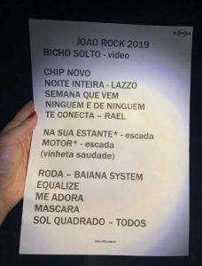 Um vídeo de “Bicho Solto” abriu a apresentação que rapidamente entregou aos fãs o clássico “Admirável Chip Novo”. Com o público cantando junto, “Noite Inteira”, faixa de Matriz, ganhou a participação especialíssima no palco de Lazzo Matumbi.
