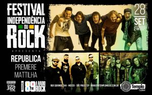Republica, Premiere e Mattilha, três supergrupos que sobem ao palco do Templo Music para gritar bem alto: “Independência ou Rock”! Você não pode perder!!!