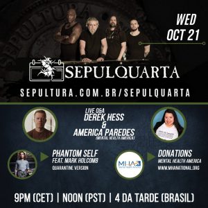 “Neste SepulQuarta estaremos conversando com o talentoso artista Derek Hess, que criou seu próprio estilo de trabalho com fortes conexões no mundo da música. Além disso, temos a America Paredes, da Mental Health America. Exploraremos assuntos sobre a doença mental que existe na indústria da música e como ela se relaciona com questões ainda mais amplas, como depressão, ansiedade e suicídio.” – explica o vocalista Derrick Green.