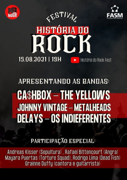 Os alunos do curso de pós-graduação em Teoria, História e Prática de Rock da Faculdade Santa Marcelina apresentam neste domingo (15) o História do Rock Fest, às 19h, com transmissão pelo Youtube (AQUI). Participam com depoimentos especiais Andreas Kisser (Sepultura), Rafael Bittencourt (Angra), João Gordo (Ratos de Porão), Rodrigo Lima (Dead Fish), Mayara Puertas (Torture Squad) e Grainne Duffy, guitarrista e cantora irlandesa.
