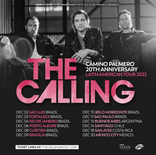O The Calling retorna ao Brasil em dezembro deste ano para mais uma série de shows recheados de hits que marcaram a geração dos anos 2000. O novo giro da banda norte-americana desta vez é ainda mais especial: é a celebração dos 20 anos do premiado disco de estreia, Camino Palmero.
