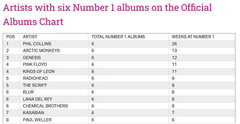 Veja a lista completa dos artistas com 6 discos número 1 na parada inglesa: