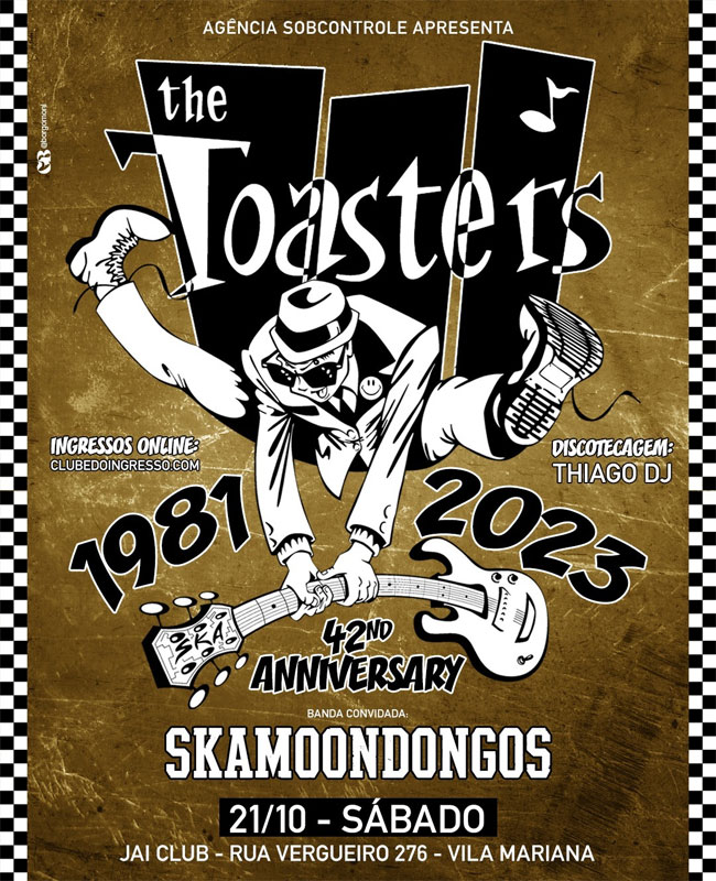 A lenda do ska 2-tone, a banda nova-iorquina The Toasters, com 42 anos de carreira e ainda uma das formações mais ativas e incendiárias do gênero, retorna a São Paulo neste sábado (21 de outubro), no Jai Club.