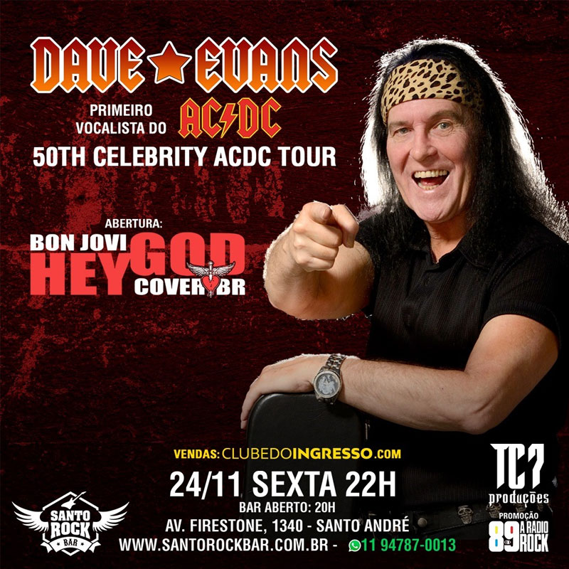 A abertura ficará por conta da banda Hey God Bon Jovi Cover. O show será em comemoração de 50 anos da tour de Dave Evans com o AC/DC.
