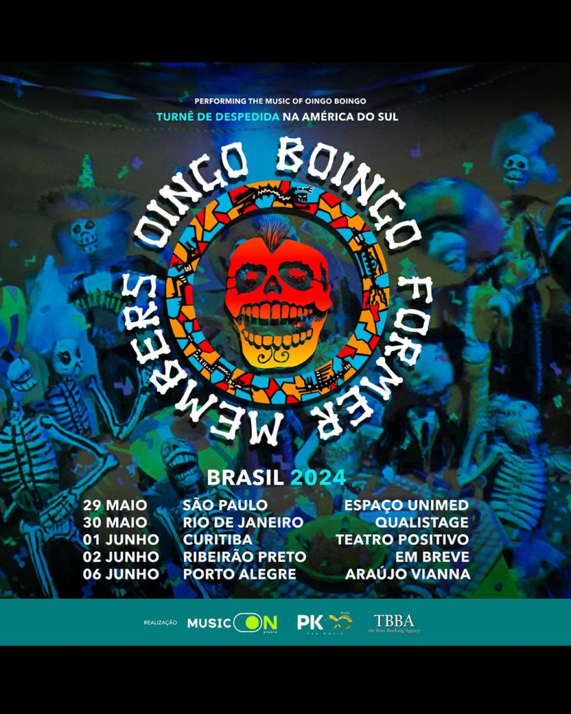 O projeto Oingo Boingo Former Members, que conta com ex-integrantes do Oingo Boingo, icônico grupo que conquistou os anos 1980 com canções memoráveis, como “Just Another Day” e “Dead Man’s Party”, marcará presença este ano no Brasil para sua turnê de despedida.