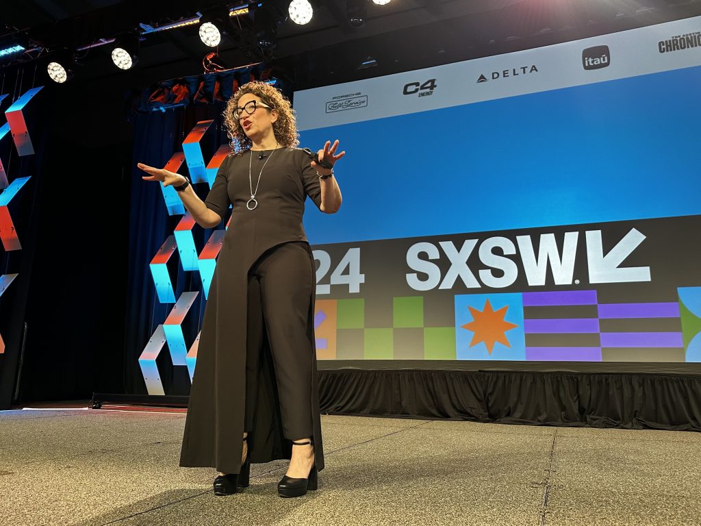 A palestra da futurista Amy Webb é considerada a mais importante de todo evento, atraindo as pessoas para a fila cerca de três horas antes de seu início. Palestrante do festival há mais de 20 anos, ela apresentou o 2024 Emerging Tech Trend Report, relatório anual de sua empresa, a Future Today Institute.