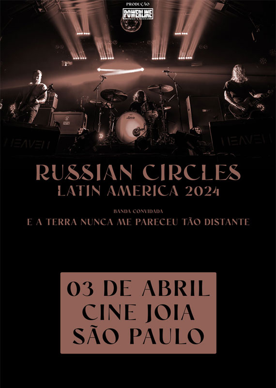 A realização do show único do Russian Circles no Brasil é da Powerline Music & Books, com apoio da Heart Merch.