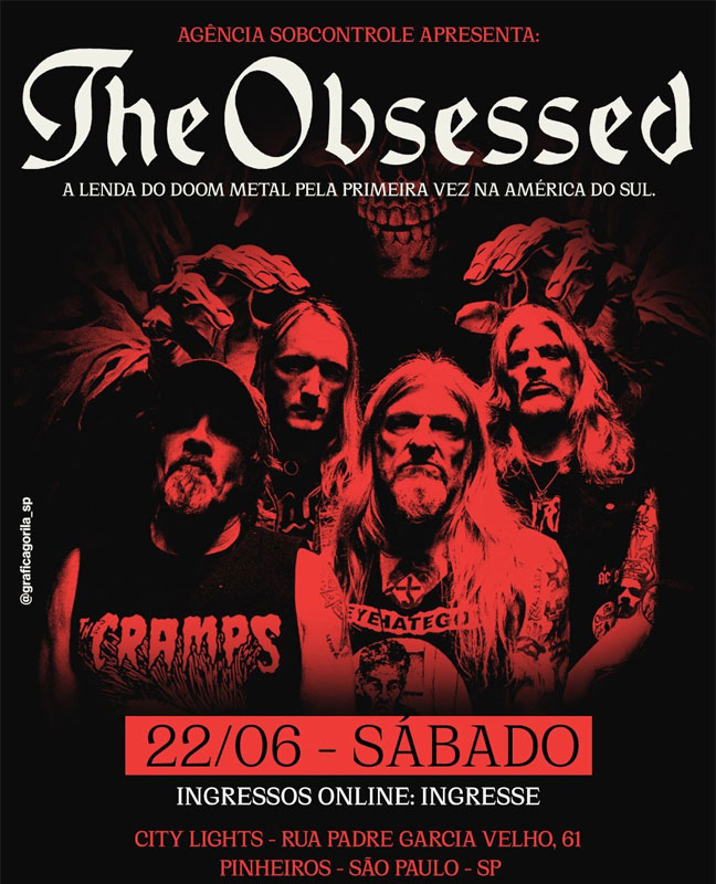 A icônica e veterana banda norte-americana The Obsessed, mundialmente aclamada como um dos nomes mais importantes do doom/stoner metal, fará em junho de 2024 a sua aguardada estreia no Brasil. Será show único, dia 22/06, em São Paulo, no City Lights (Pinheiros).