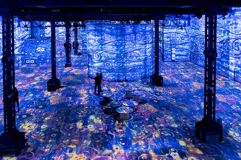 O público brasileiro terá a oportunidade de presenciar exatamente os mesmos shows de superprojeções exibidos no grande Atelier des Lumières, em Paris, maior referência mundial na arte imersiva. Paredões gigantes de 7 metros de altura estruturam o mega-atelier de projeções que possui 1.500 m², sem contar os ambientes cenográficos que o antecedem.
