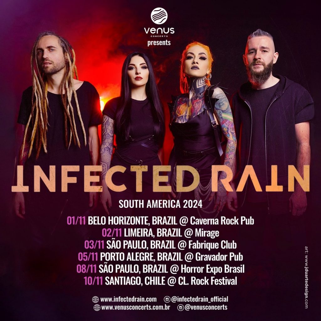A banda de metal moderno da Moldávia (Leste Europeu) Infected Rain, que tem como frontwoman a versátil e talentosa vocalista Lena Scissorhands, sensação mundial do metal moderno e nome de destaque da influente gravadora austríaca Napalm Records, inicia a aguardada turnê de estreia no Brasil a partir de 1º de novembro – serão cinco shows pelo país.