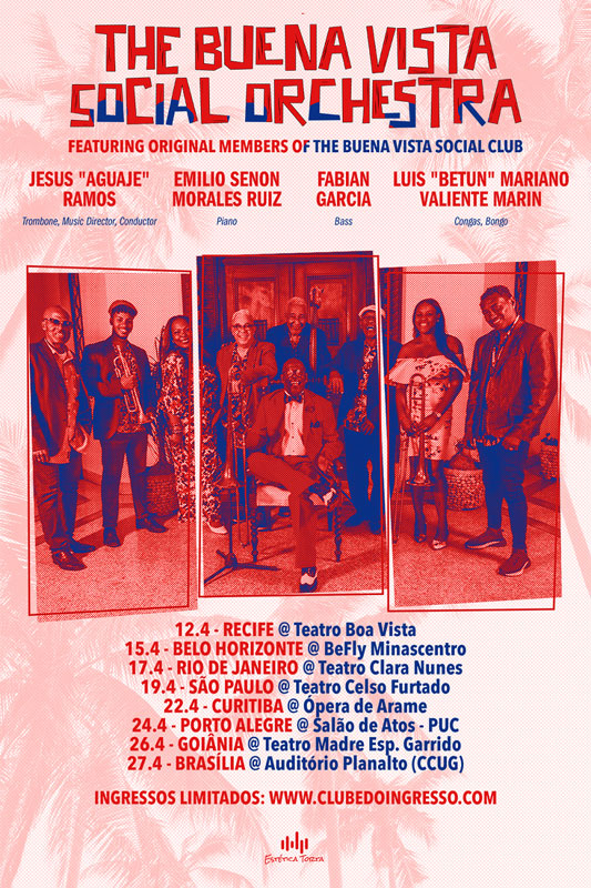 O show seguinte é dia 17/04 no Rio de Janeiro/RJ, no Teatro Clara Nunes. Em São Paulo/SP, o Buena Vista Social Orchestra toca dia 19/04 no Teatro Celso Furtado (Parque Anhembi).