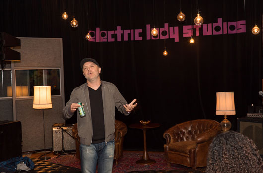 Eram cerca de 30 jornalistas reunidos em uma sala com sofás de couro, tapetes estilo persa, piano e um grafite psicodélico na parede. Ao meu lado, Mark Ramone, no papel de mero ouvinte, também aguarda o início da sessão.