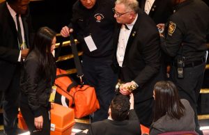 Discretamente, a equipe médica o examinou enquanto estava sentado na primeira fileira e o levou para os bastidores. Mais tarde foi confirmado que o ator não sofreu ferimentos graves.