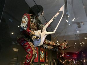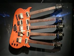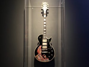 E embora a exposição tenha uma enorme variedade de instrumentos, a guitarra é a estrela desse show. Muitas paredes são tomadas por elas, que foram protagonistas de histórias incríveis nos palcos e estúdios, como a guitarra elétrica de Jimi Hendrix, “Love Drops”, originalmente decorada por ele; “Blackie” de Eric Clapton, “Frankenstein” de Eddie Van Halen entre outras.