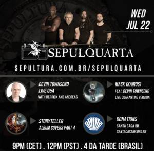 “Devin Townsend é um músico único, tão poderoso e criativo, tão pesado! Estamos muito honrados e felizes por tê-lo aqui conosco para falar sobre sua música e carreira. Ele também tocará a música ‘Mask’ do álbum Kairos em outra performance histórica do ‘Live Quarentine’ dessa SepulQuarta”, diz Andreas.