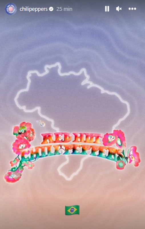 Vem show? Red Hot Chili Peppers publica stories com mapa do Brasil