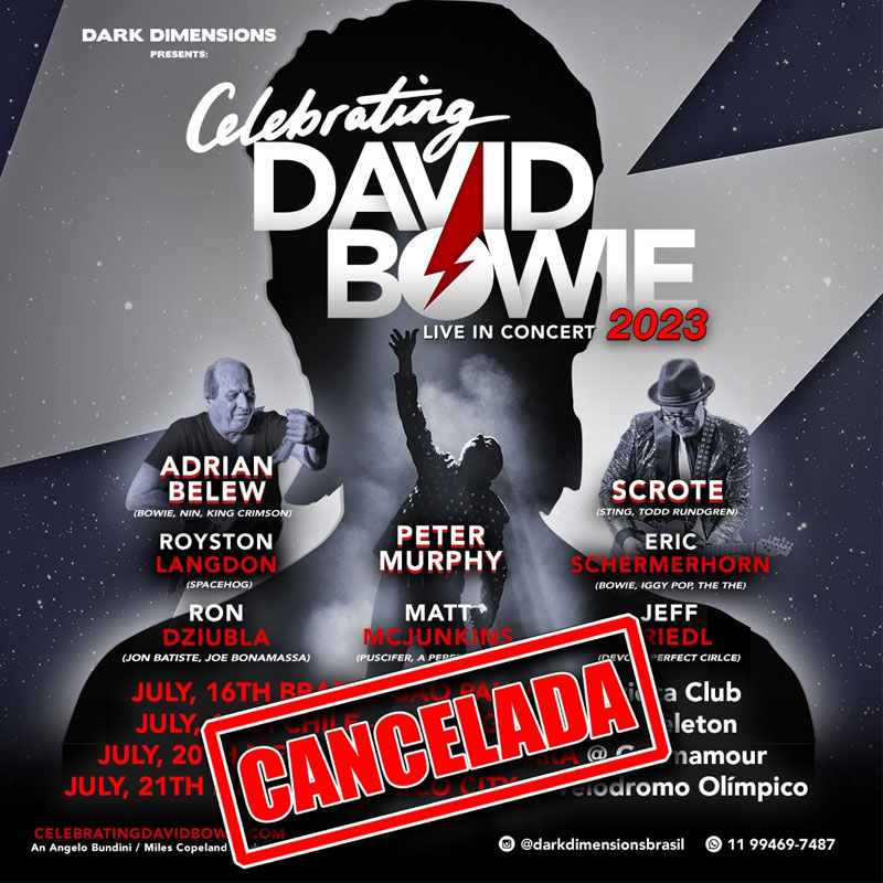 A turnê sul-americana “Celebrating David Bowie (Live In Concert 2023)” de Peter Murphy, lendário líder do Bauhaus e considerado um dos precursores do rock gótico, na qual ele celebraria a vida e a obra de David Bowie ao lado de grandes músicos, foi infelizmente cancelada.