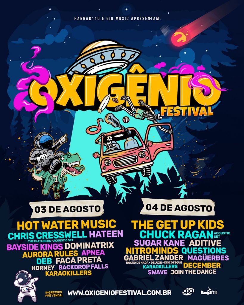 O Oxigênio Festival 2024 segue no domingo, com mais uma porção de bandas nacionais e estrangeiras com longo histórico no rock alternativo, como The Get Up Kids, Chuck Ragan (vocalista do Hot Water Music com um set acústico), Gabriel Zander (set acústico), Nitrominds e muito mais.