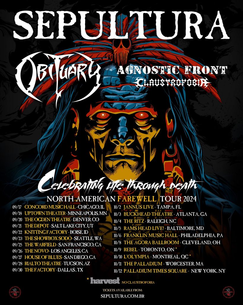 Claustrofobia foi convidado para abrir os shows de despedida da maior banda de metal do Brasil, o Sepultura. A “Celebrating Life Through Death” chegará às estradas norte-americanas em setembro e também contará com apresentação dos veteranos do death metal, Obituary e os icônicos pioneiros do hardcore de Nova York, Agnostic Front.