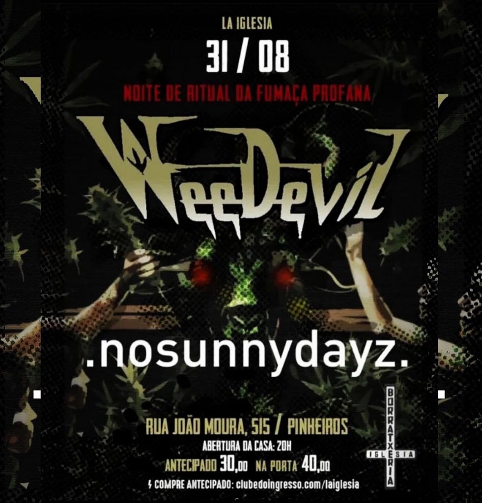 O WeeDevil tem ainda uma outra apresentação agendada para a capital paulista. A banda é atração no dia 06 de outubro (domingo) ao lado de Lucifer, Pesta, Space Grease e Tamtun, no Fabrique.