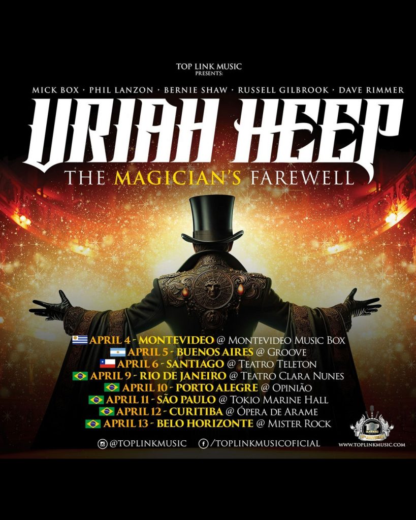 A produtora Top Link Music anunciou na manhã desta quarta-feira (06) a passagem da turnê de despedida do Uriah Heep na América do Sul.